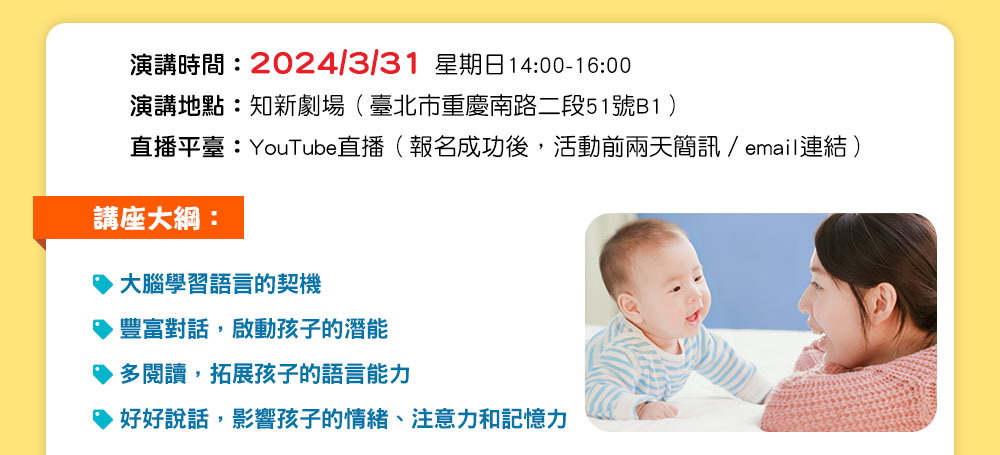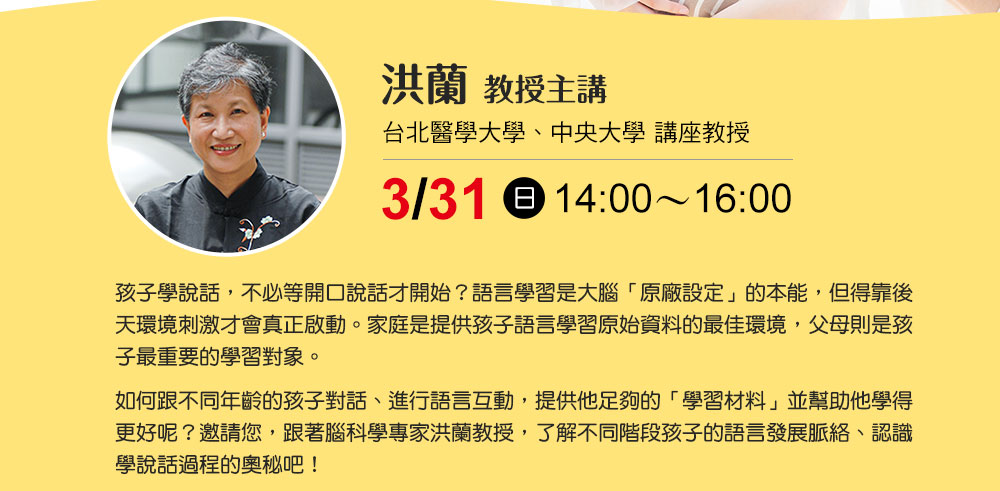 【信誼專家講堂】洪蘭教授 主講/腦科學,告訴你孩子學說話的奧秘 免費報名中!